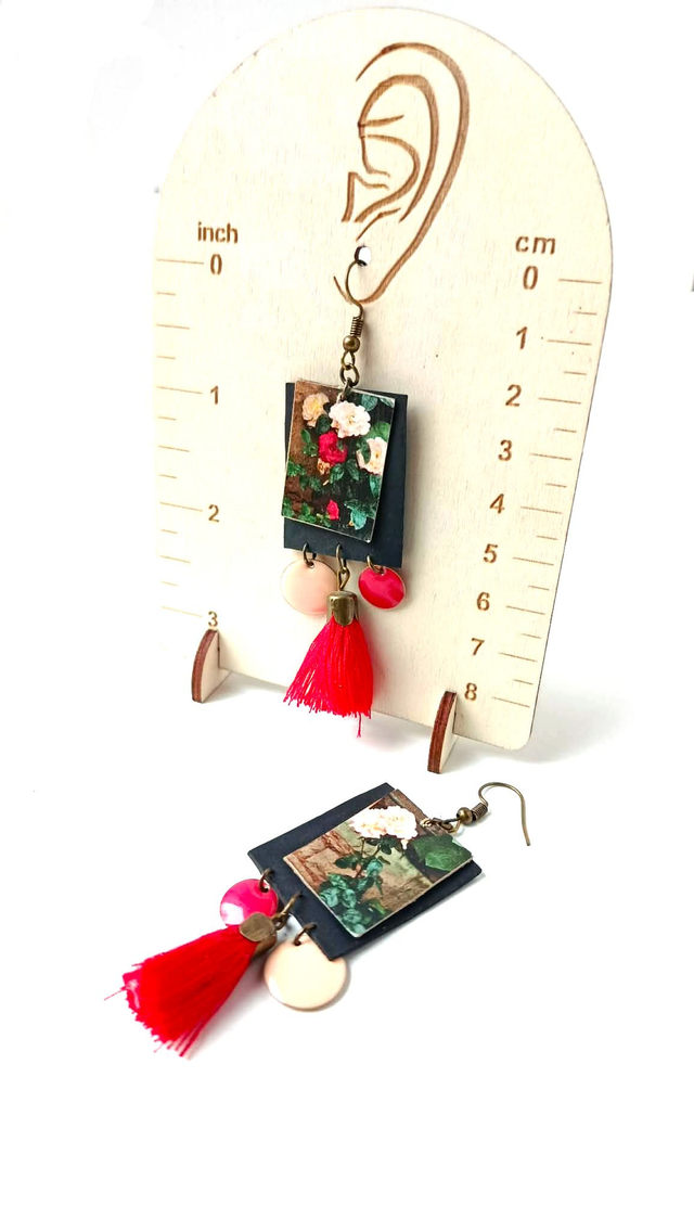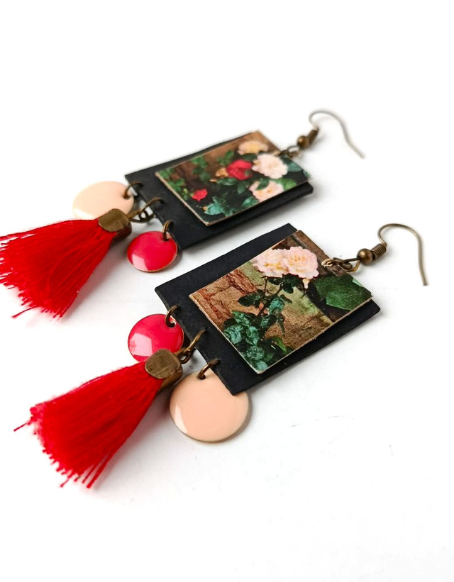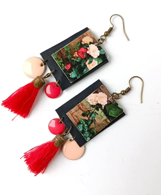 BO "Création" confectionnées à partir de diverses matières recyclées et valorisées (signalées par♻️) 🌙Gros sequin noir en chambre à air de tracteur ♻️. Papier Rose)♻️ verni collé sur du carton . Pompon fait-main. Attaches : crochets hameçons en laiton de couleur bronze. 📏DIMENSIONS : 7 cm; Largeur: 2.5 cm 📕REGLEMENTATION: Toutes les parties en laiton respectent la réglementation en vigueur : garanties sans plomb, sans nickel et sans cadmium. 💡VARIATIONS possibles: En cas d'allergie, je peux changer l'attache pour une en acier inoxydable. Si vous n'avez pas les oreilles percées, je change le crochet pour un clip en laiton! 📩EXPEDITION en suivi dans une petite pochette en papier recyclé. ❓️N'hésitez pas à me contacter en cas de question.