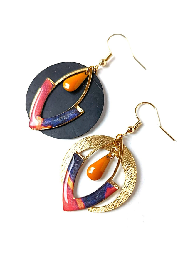 Boucles d'oreilles Asymétriques Upcyclées en Chambre à Air et Papier Recyclés - Coulée de Lave