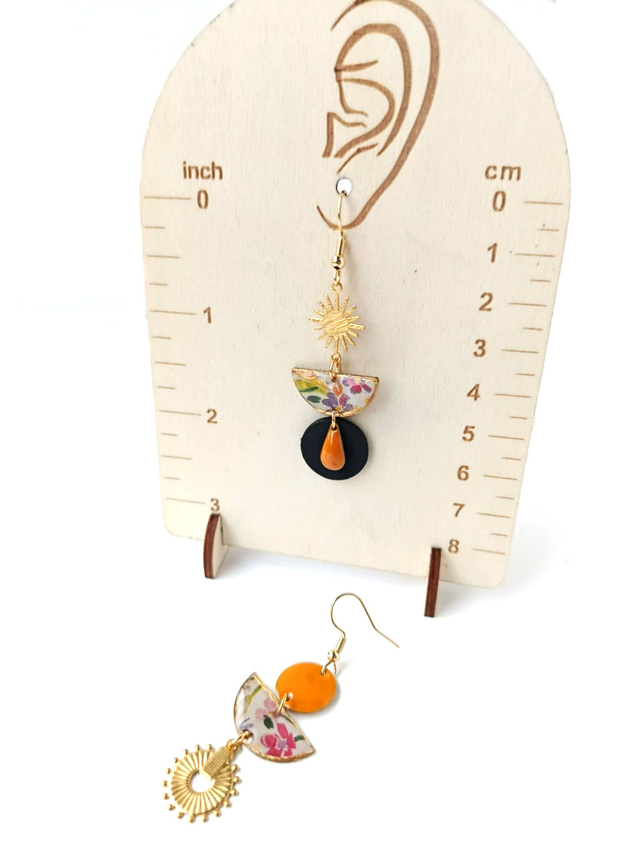 Boucles d'oreilles Asymétriques Upcyclées en Chambre à Air et Papier Recyclés - Estivales