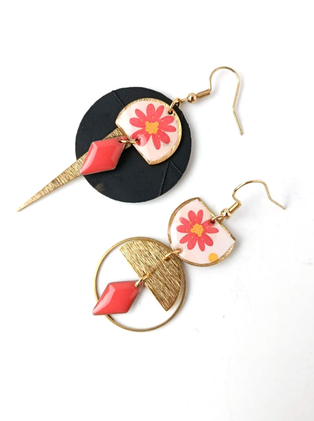 🌙Boucles d'oreilles Créations Asymétriques confectionnées à partir de diverses matières recyclées mentionnées par ♻️.