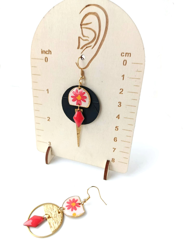 Boucles d'oreilles Asymétriques Upcyclées en Chambre à Air et Papier Recyclés - Florale