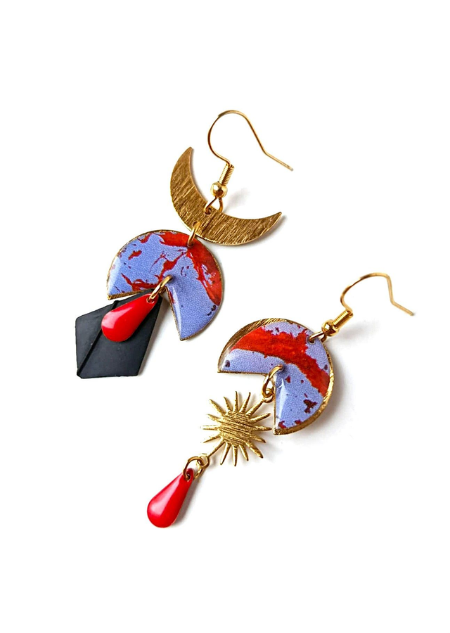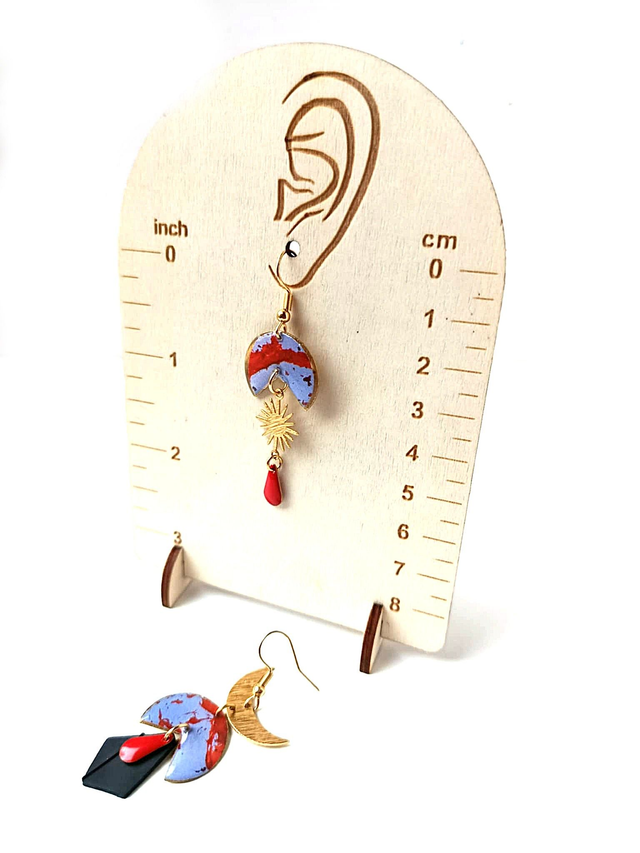 🌙Boucles d'oreilles Créations Asymétriques confectionnées à partir de diverses matières recyclées mentionnées par ♻️.