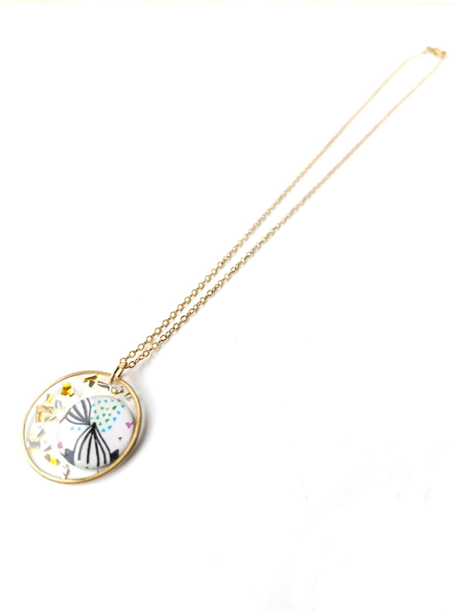 🌙 Pendentif confectionné à partir d'une carte de Tarot recyclée♻️️ et des morceaux de ballon doré (découpé à la main, puis insérée dans un anneau doré avec de la résine).