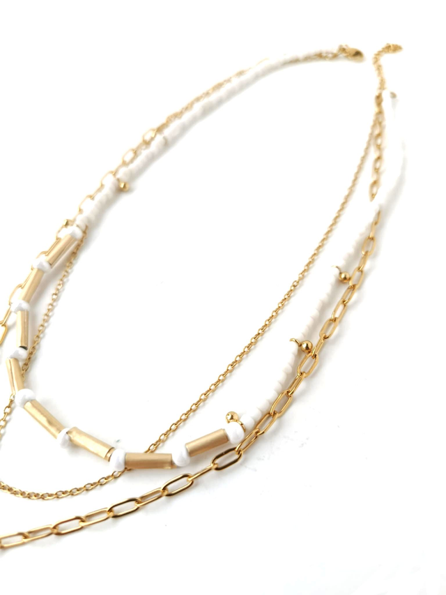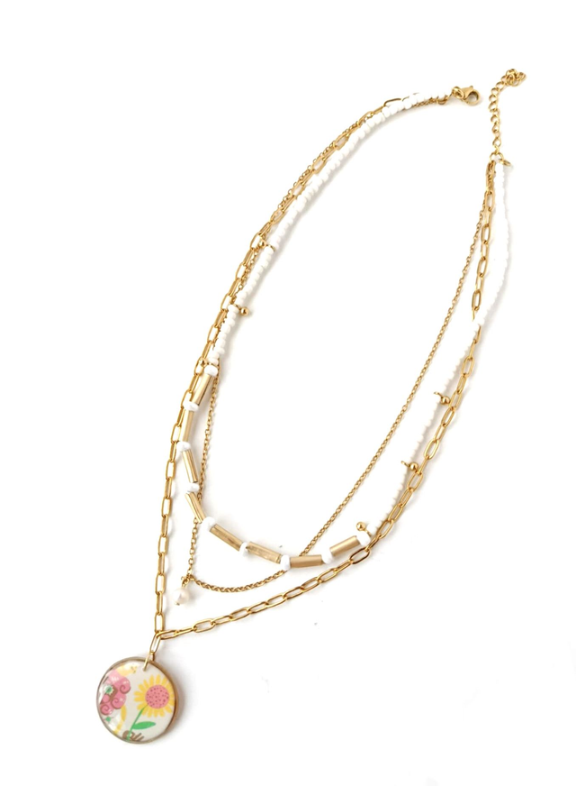 📏DIMENSIONS : Chaîne grosses mailles de 42 cm, chaîne fine: 39 cm, collier perles: 36 cm. Pendentif 2.5 cm de diamètre.