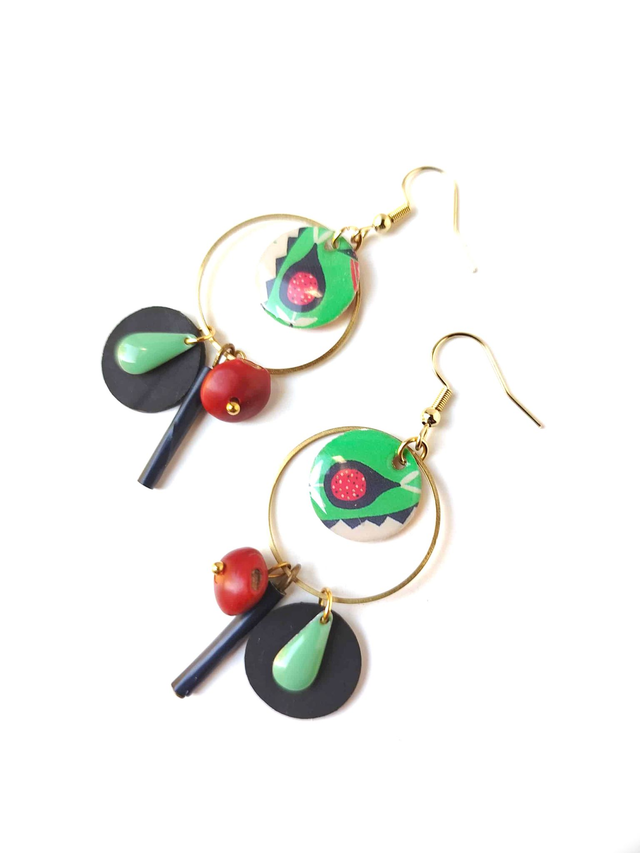 Créoles Upcyclées en Carte de Tarot, Chambre à air de tracteur et Perles Recyclées - Goyaves